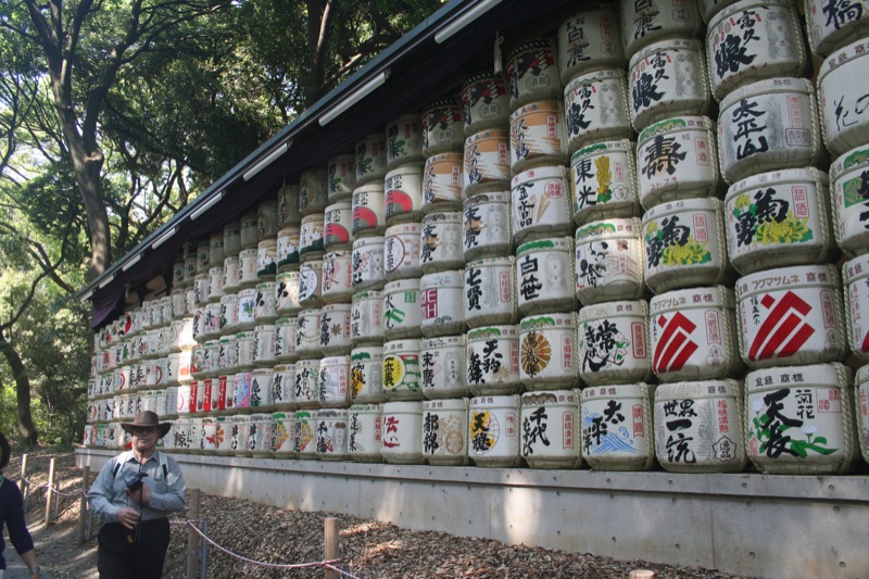 IMG_1896_800 Published June 11, 2014 at 800 × 533 Row upon row of empty sake casks. Tribute to Emporer Meiji who ruled Japan in the 1860’s when it first opened to the west. Th Meji clan family business was saki..