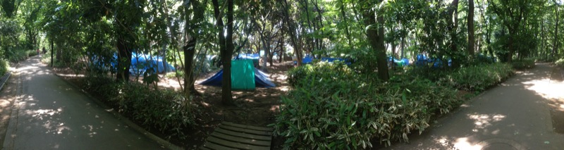 IMG_5722_800 Published June 11, 2014 at 800 × 213 View of the tents. I remember seeing something like this in Thomkins Square Park in New York City back in the early 90’s. It was filthy. This feels more like a camp site.