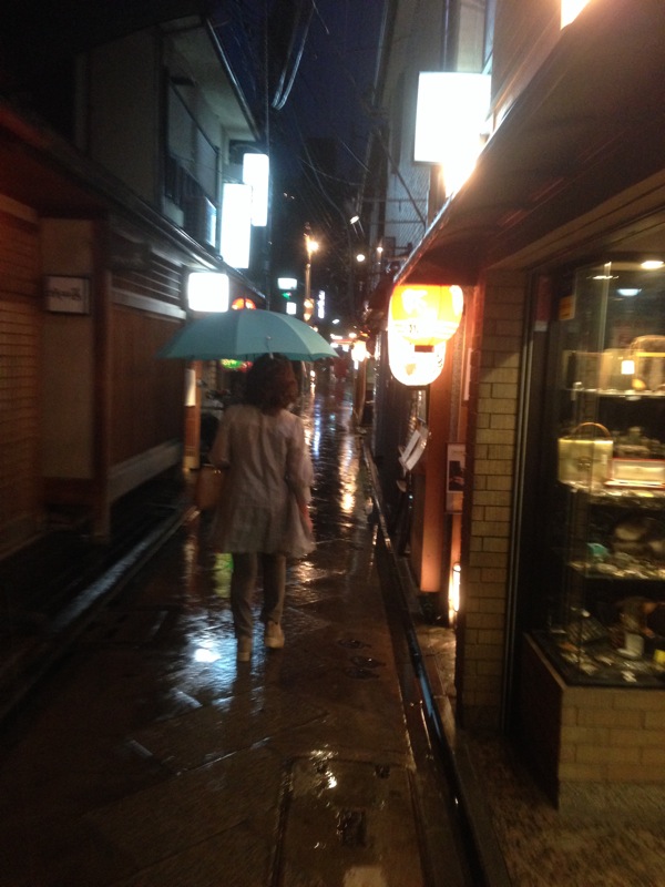 IMG_5847_800 Published June 11, 2014 at 600 × 800 in Kyoto 1 ← Previous Next → Kyoto at night. Out to dinner in the rain. Down a back alley loaded with restaurants and a few Geisha. Blade Runner much?