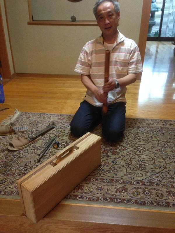 He turned the car around and went back to his house. We pulled in the drive way and he invited us inside. We stayed in the foyer with our shoes on and his wife came out. We greetted each other and the man disappeared into another room. He came back right away carrying a wooden box and sat on the floor to show us.. Not a lick of metal on this box. Hinges, handles and clasps, all wood. Before we could truly marvel at it, he opened it up, and inside was a bamboo flute and music stand. It was a case for his flute! Without prompting he began to play a song. It was “America the Beautiful”. We stood silently, probably with our mouths hanging open, listening to our little private concert in this strangers house. When he finished we all laughed and smiled and bowed low. Before we could express anything else, his wife came back in the room speaking frantically. Our bus was coming and we must leave if we want to catch it! The three of us charged out of the house, hopped in the car and made it to the bus stop right as the bus arrived. We got out of the car said our goodbeyes and ran to the bus. We climbed aboard and stared at each other dumbstruck by the kindness and hospitality this man demonstrated. And we didn’t even get his name.