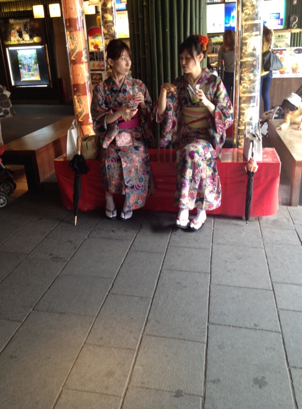 photo.1_800 Published June 24, 2014 at 592 × 800 in Kyoto 2 ← Previous Next → In the train station on the way to the next landmark. We stopped for some green tea ice cream and saw these two ladies cooling off.