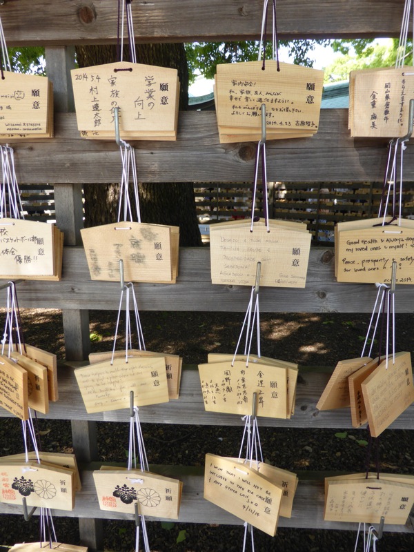 Typically at a shrine one prays for good fortune in some regard. Different Shrines celebrate different things. For a small token one could buy a wooden card and attach a wish to it. Then hang it under the tree and hope that it would come true.
