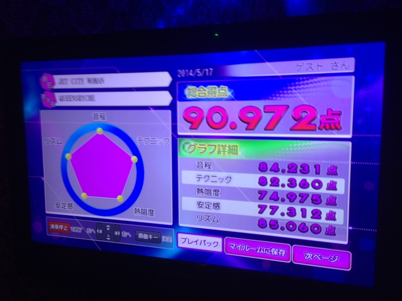 IMG_6102_800 Published June 11, 2014 at 800 × 600 in Tokyo 2 ← Previous Next → Casey’s high score! With our own little room and fresh drinks coming every half hour or so Karaoke was way more fun tha I was expecting.
