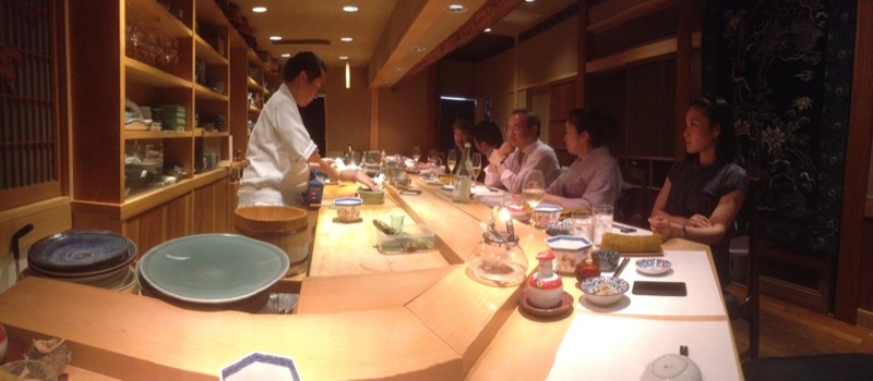 IMG_6197_800 Published June 11, 2014 at 800 × 350 in Tokyo 2 ← Previous Next → Erika took us to a wonderful traditional sushi restaurant called Sushiyuu in Roppongi. The restaurant serves at most 15 people. The chef chooses your meal for you. As the meal plays out there are 12 or so individual courses.